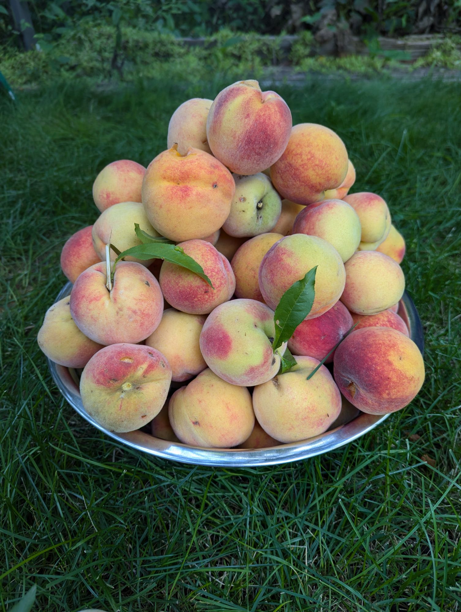 We got about three dozen peaches last year, which was surprising enough. Ol’ Dick wasn’t yanking our chains after all! This year, it’s at least double that. We have more peaches than we know what to do with.