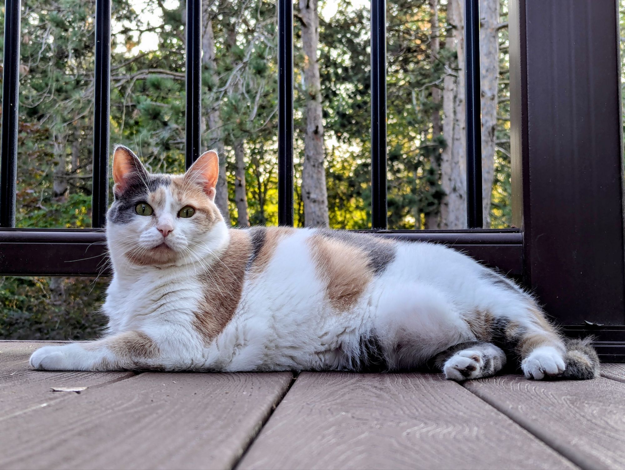 They have come to love deck time, and it’s a great way to let them outside safely. It keeps them contained and is much too high for them to jump from. I even bought a Thermacell to keep the mosquitoes at bay.