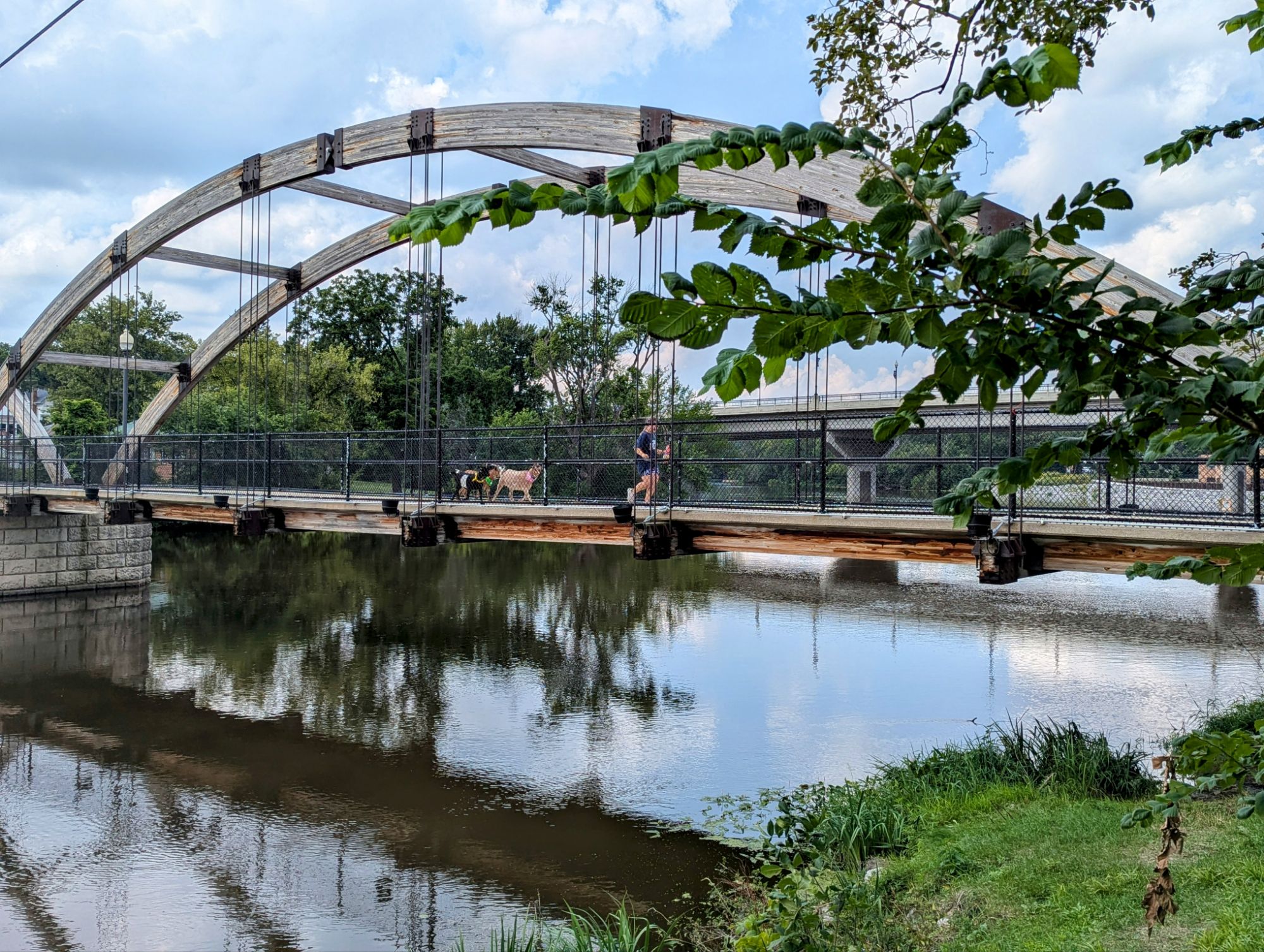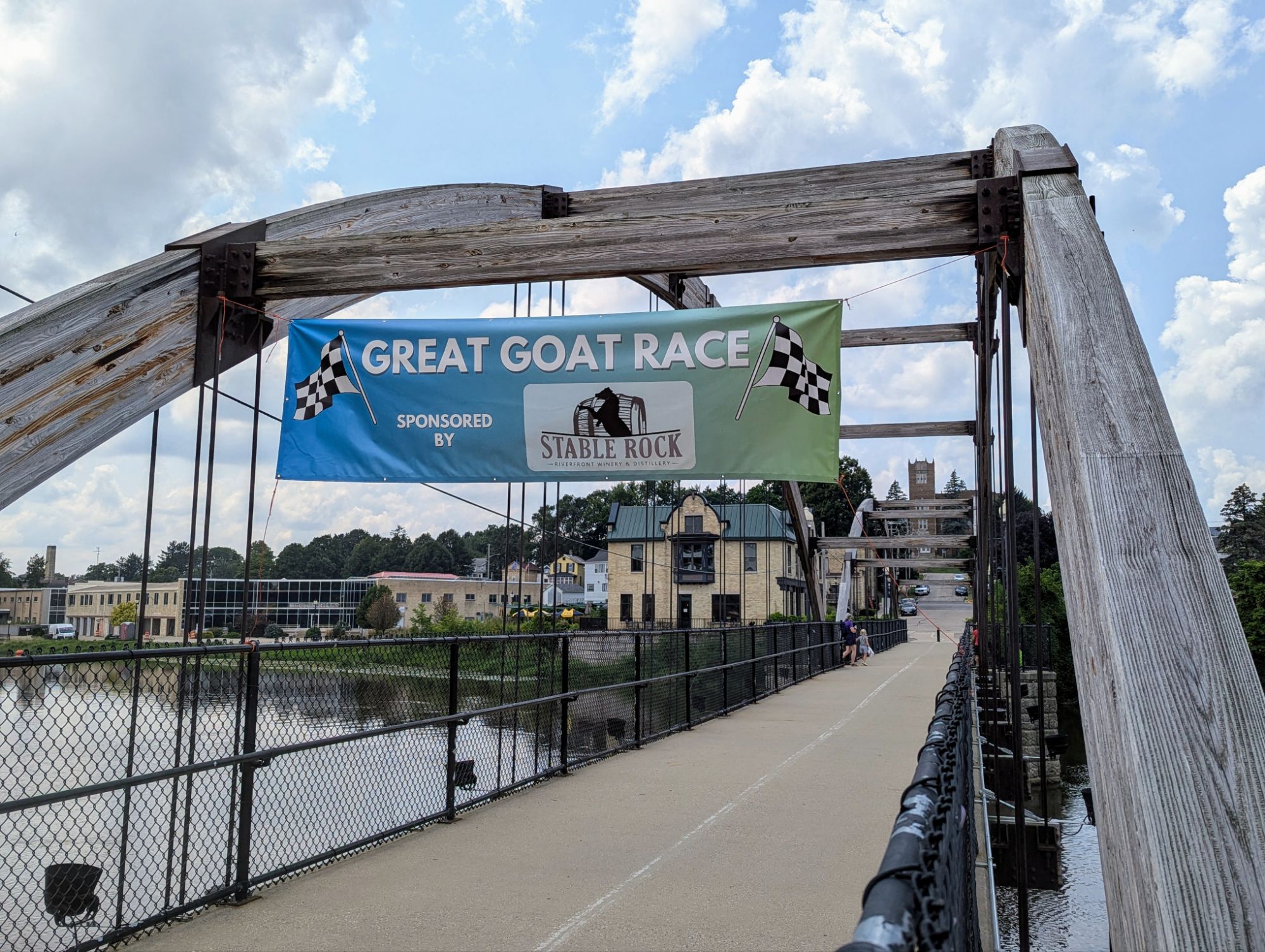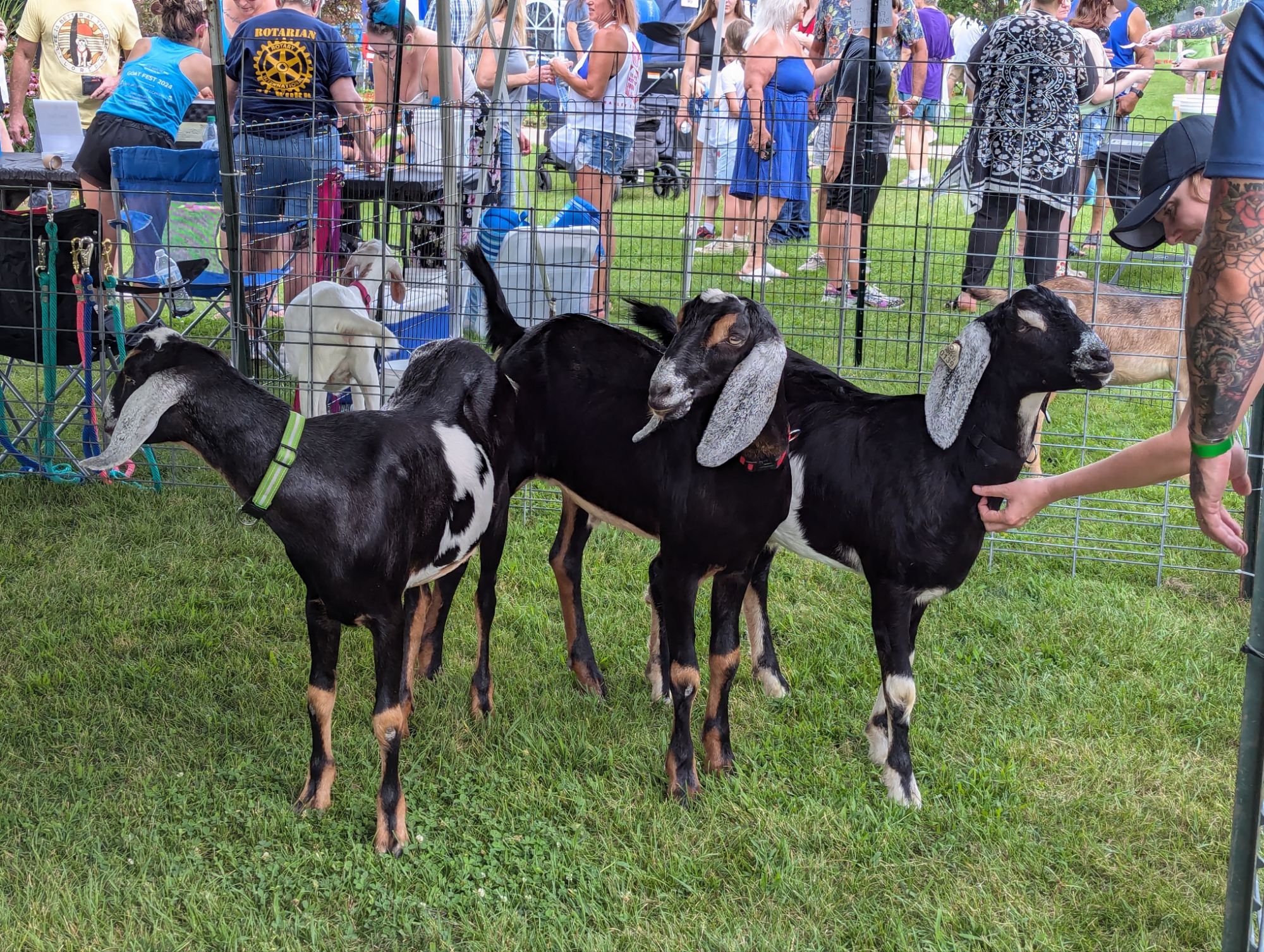 The goats didn’t exactly race across the bridge so much as walk kinda quickly, but I don’t really blame ’em. The heat and humidity were pretty intense. We wandered around for a while, and grabbed a seat to listen to some live music. But the band was country, and they weren’t even playing any good country music (though admittedly my definition of what constitutes good country music is extremely narrow, e.g., Johnny Cash, Chris Stapleton, Shania Twain (but not the ballads) and Waylon Jennings), so we decided to bug out and return to our beautifully air-conditioned home, where we proceeded to while the evening away with cribbage and indie rock records, which are more our speed.
