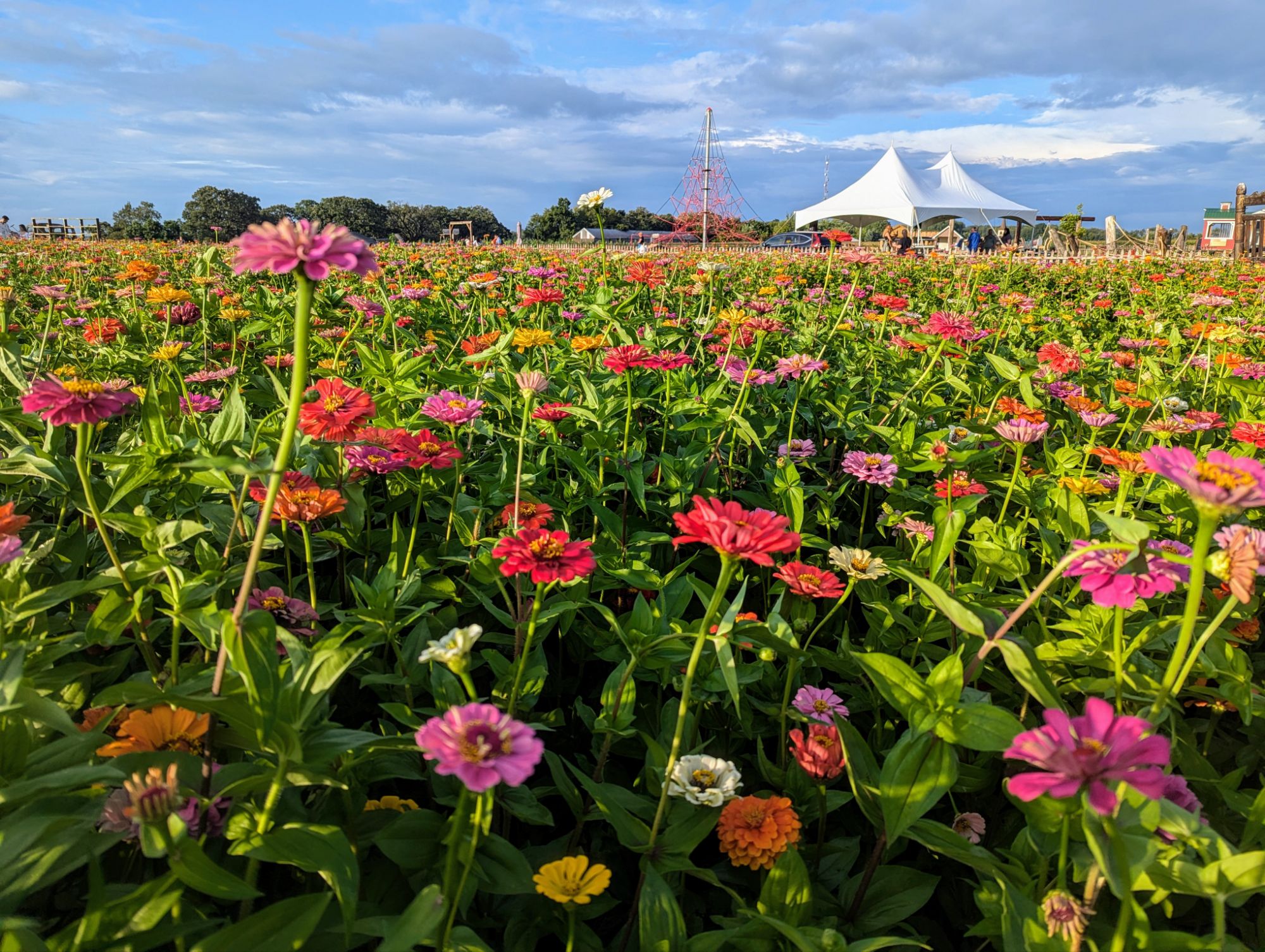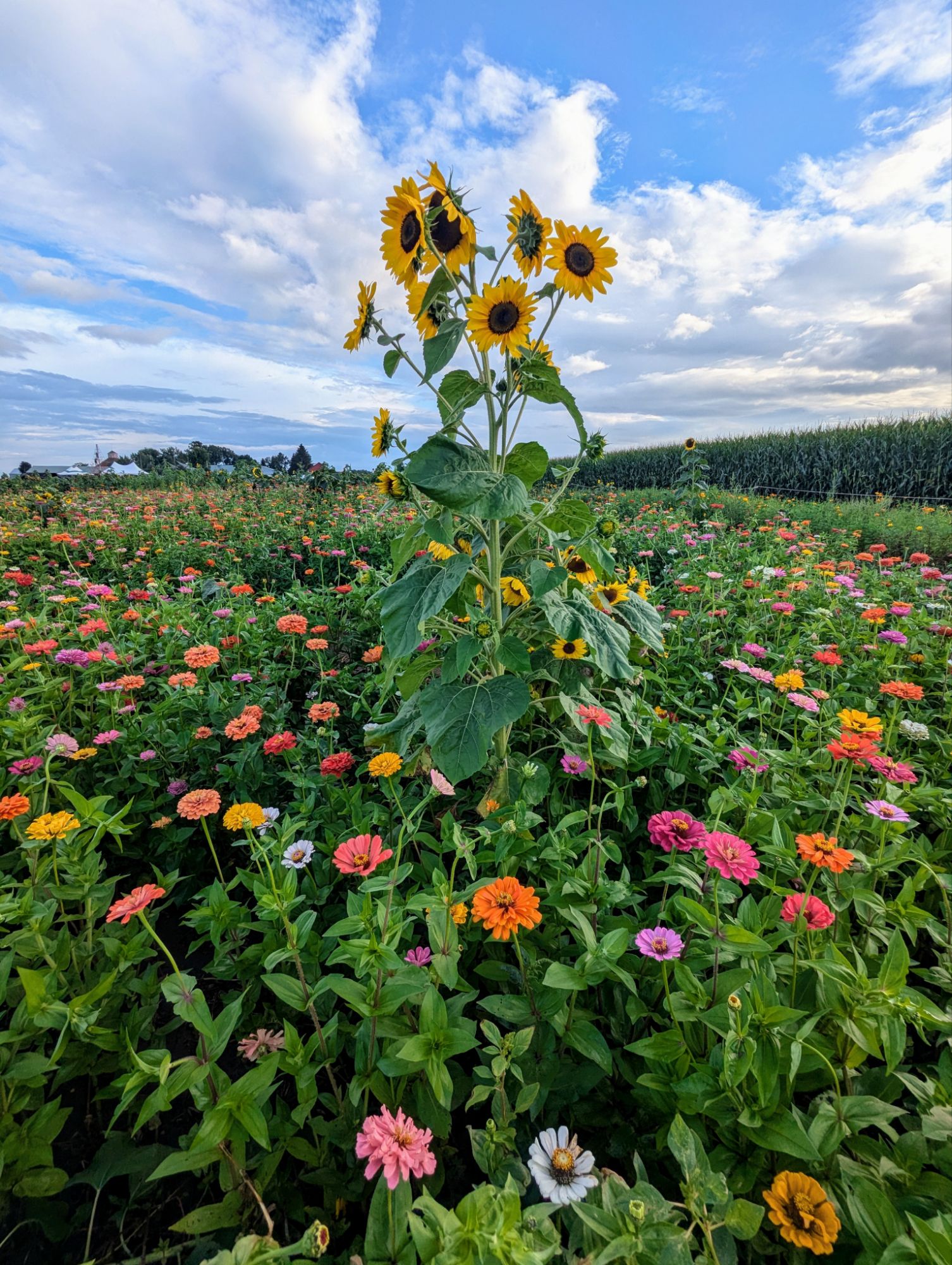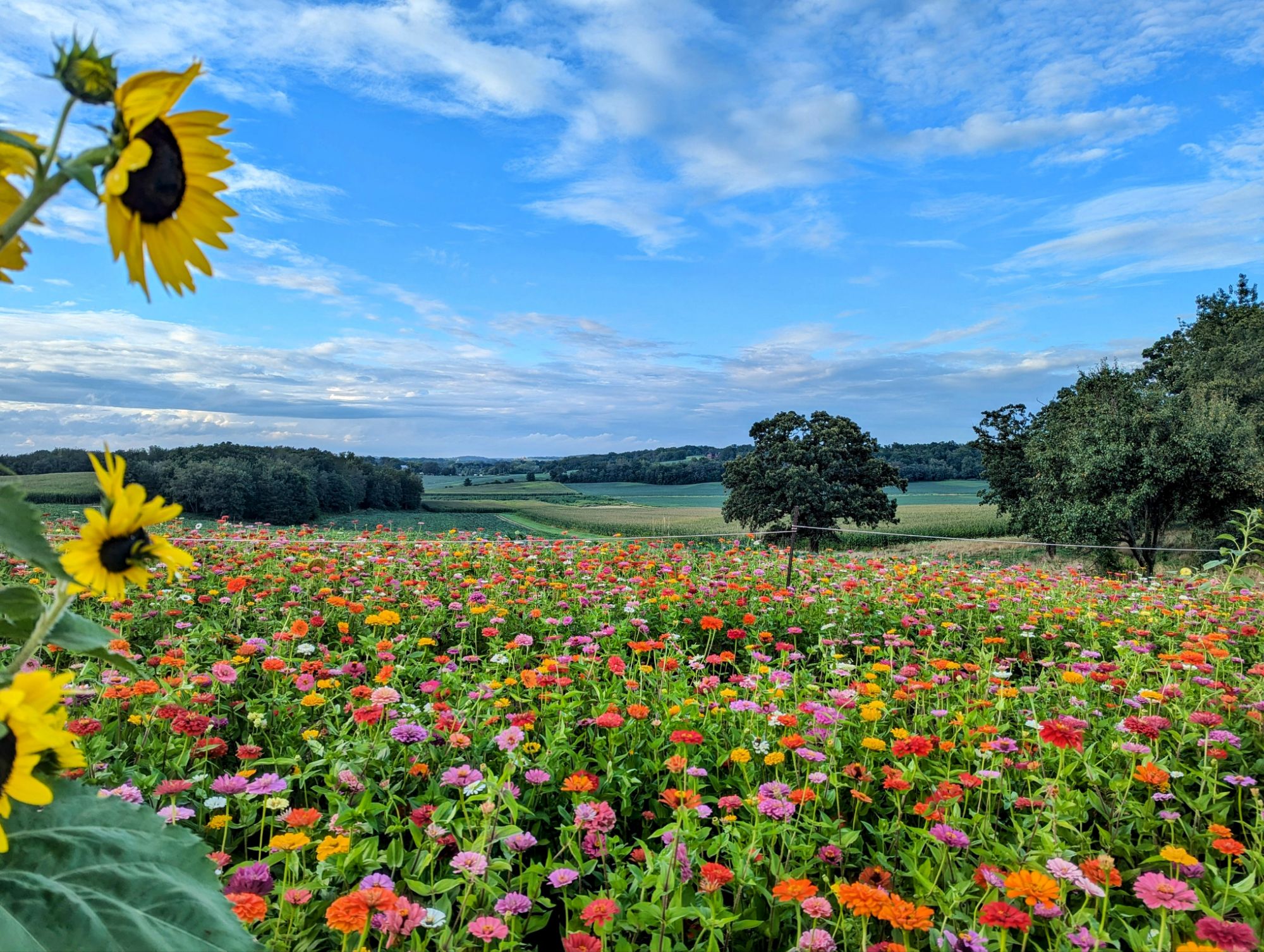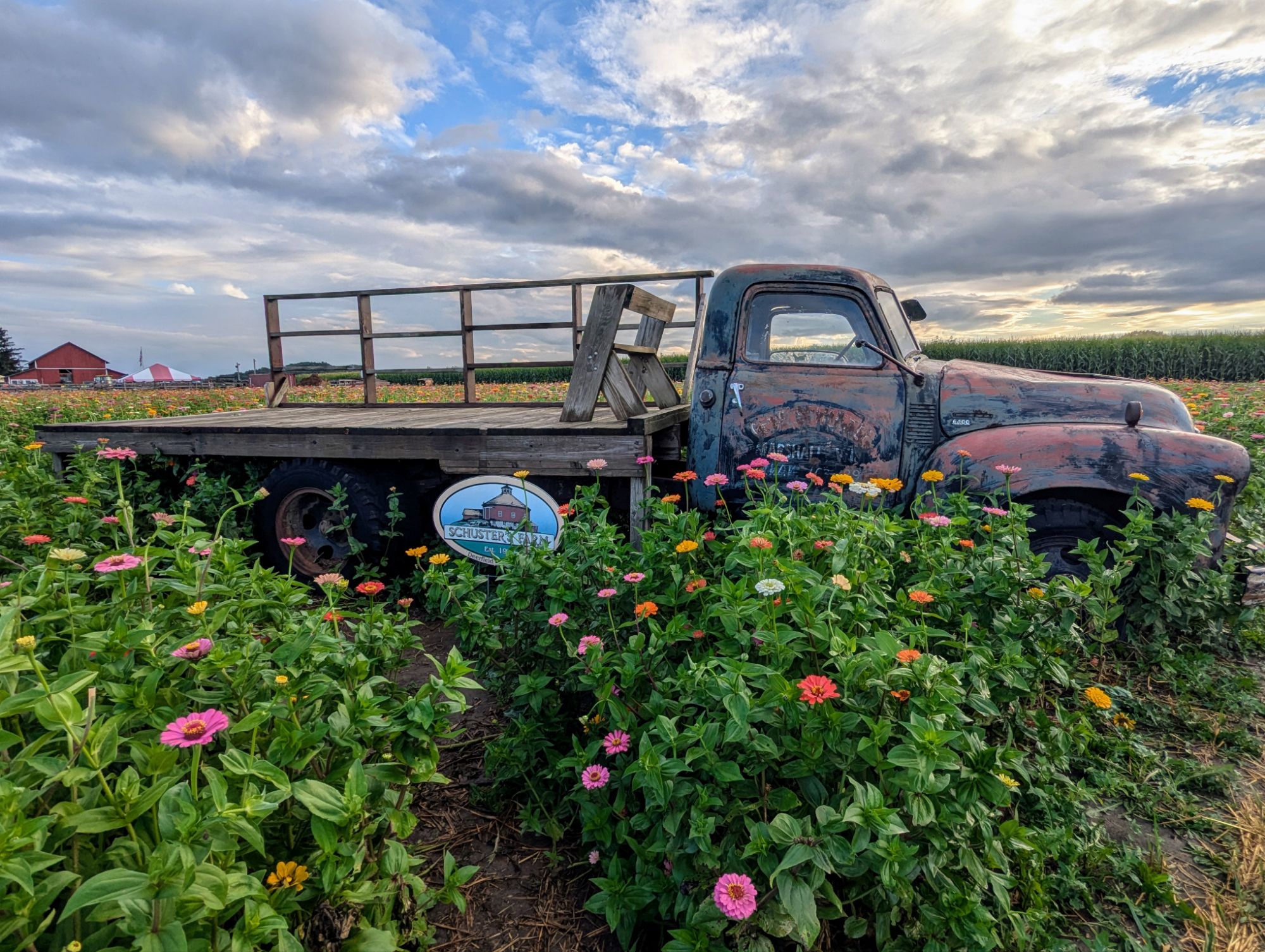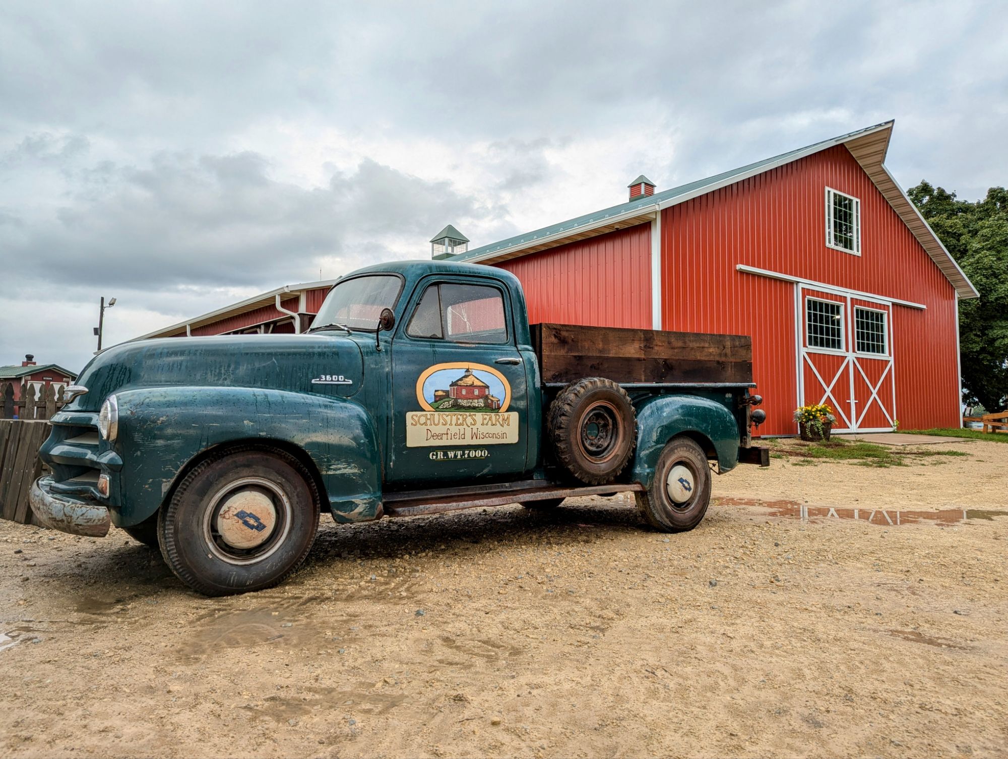 After visiting Taliesin, we stopped in Madison to run a few errands, which included cheese curds and cocktails at the Great Dane Pub. We timed our stop perfectly, because a thunderstorm and heavy downpour rolled through while we were parked at the bar. The storm broke just in time for our next stop: Schuster’s Farm, for their annual Blooms on the Farm event. We went last year and had a blast, so a return trip was in order.