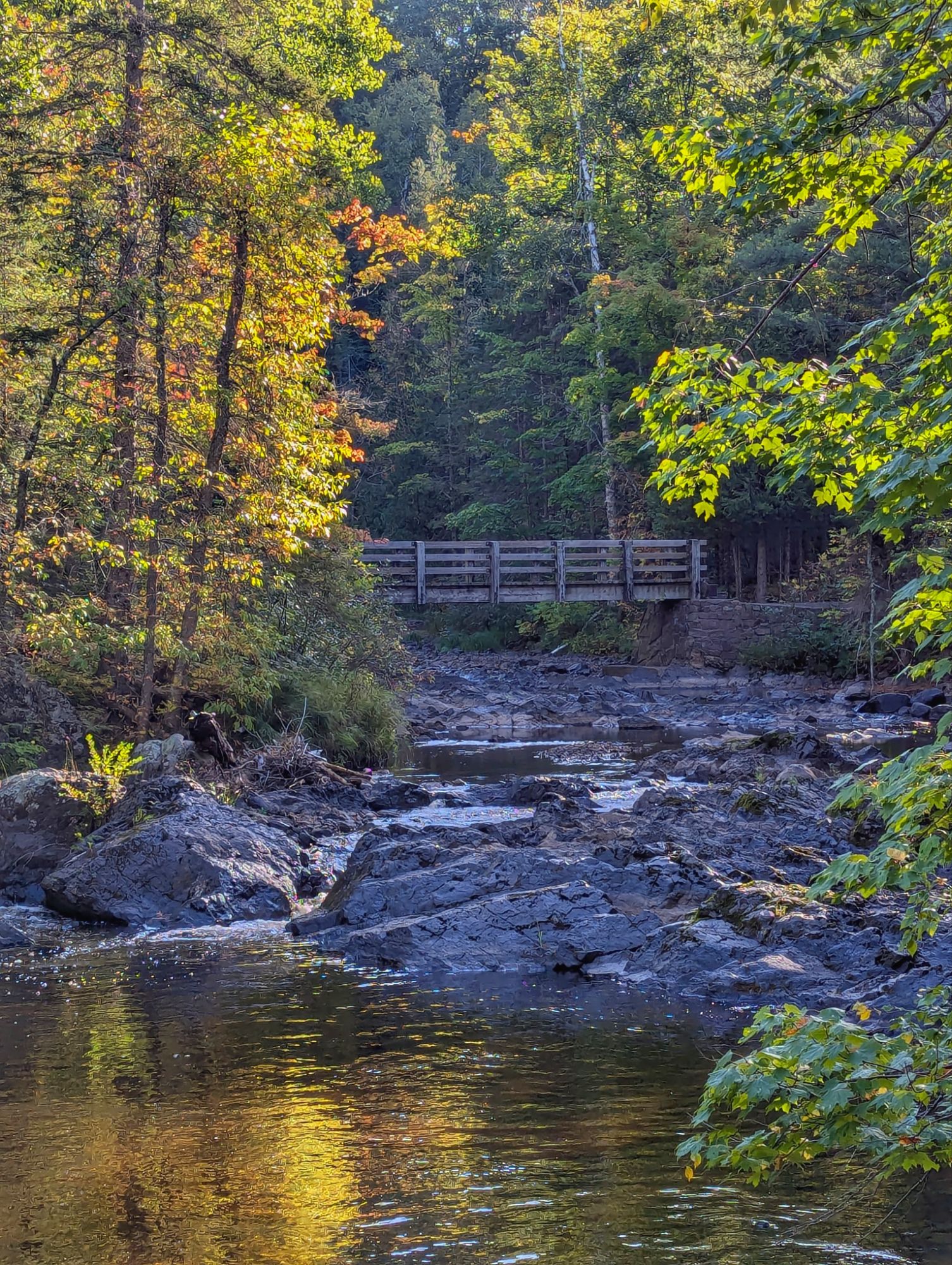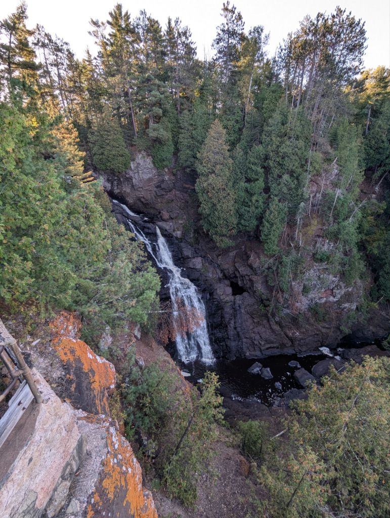 If that had been the extent of my getaway, it would have been a very fulfilling one. BUT WAIT! THERE’S MORE! I still had one more stop to make on Friday morning before beginning the long trek home: a hike through Pattison State Park, which boasts Wisconsin’s tallest waterfall. Tara and I had visited two years ago, and I wanted to come back closer to the peak fall foliage, not realizing this was the same weekend we visited in 2022, ha. Not that it mattered; I was the first one at the park, a few minutes after 8 a.m., and spent 2.5 hours hiking and enjoying the scenery.