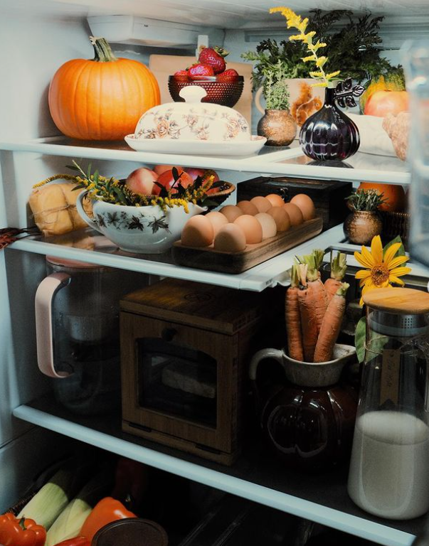 I was scrolling through my Pocket feed recently (as opposed to my pockets, where there’s just keys and lint), and stumbled upon an article about a hot new trend called “fridgescaping.” In case you’re living under a rock, as I apparently was, this involves decorating the inside of your refrigerator like you would any other space in your house, adding things that don’t normally belong there. Like fresh flowers and framed photographs and ceramic figurines — trinkets you might expect to find in a China hutch, not a place where leftovers go to die. Some people even create entire themed fridgescape displays.