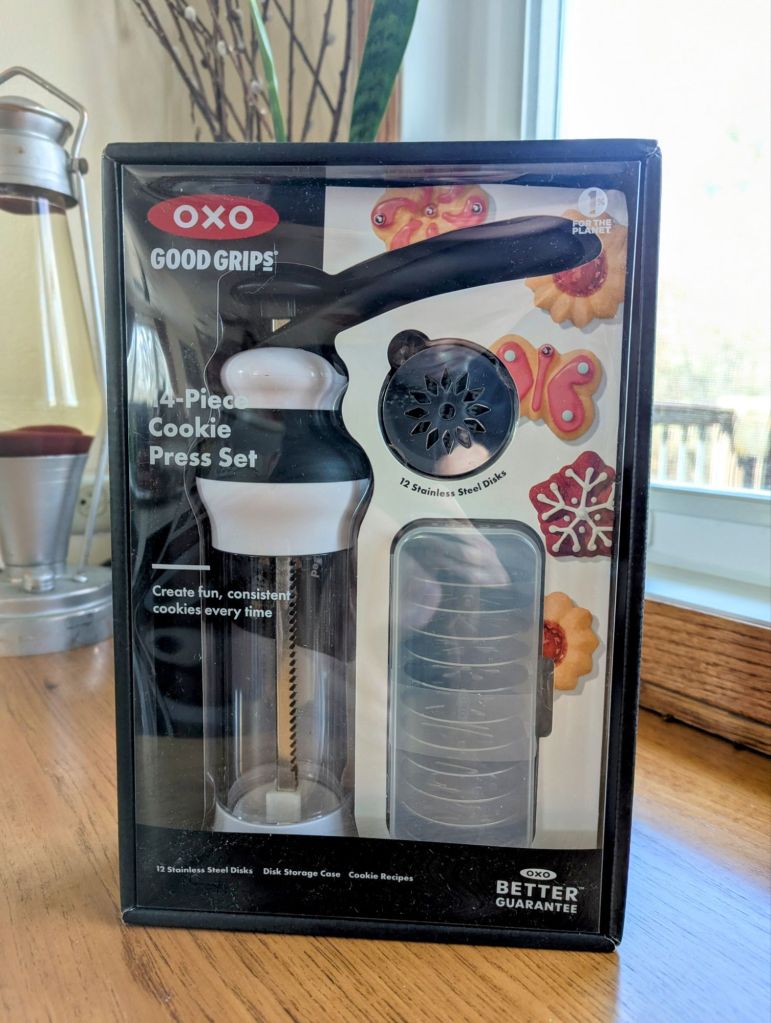So, after this year’s Christmas baking, I broke down and bought a new cookie press. Both Food & Wine and Serious Eats rated this OXO as their top choice, and it was only $32, so I took the plunge.