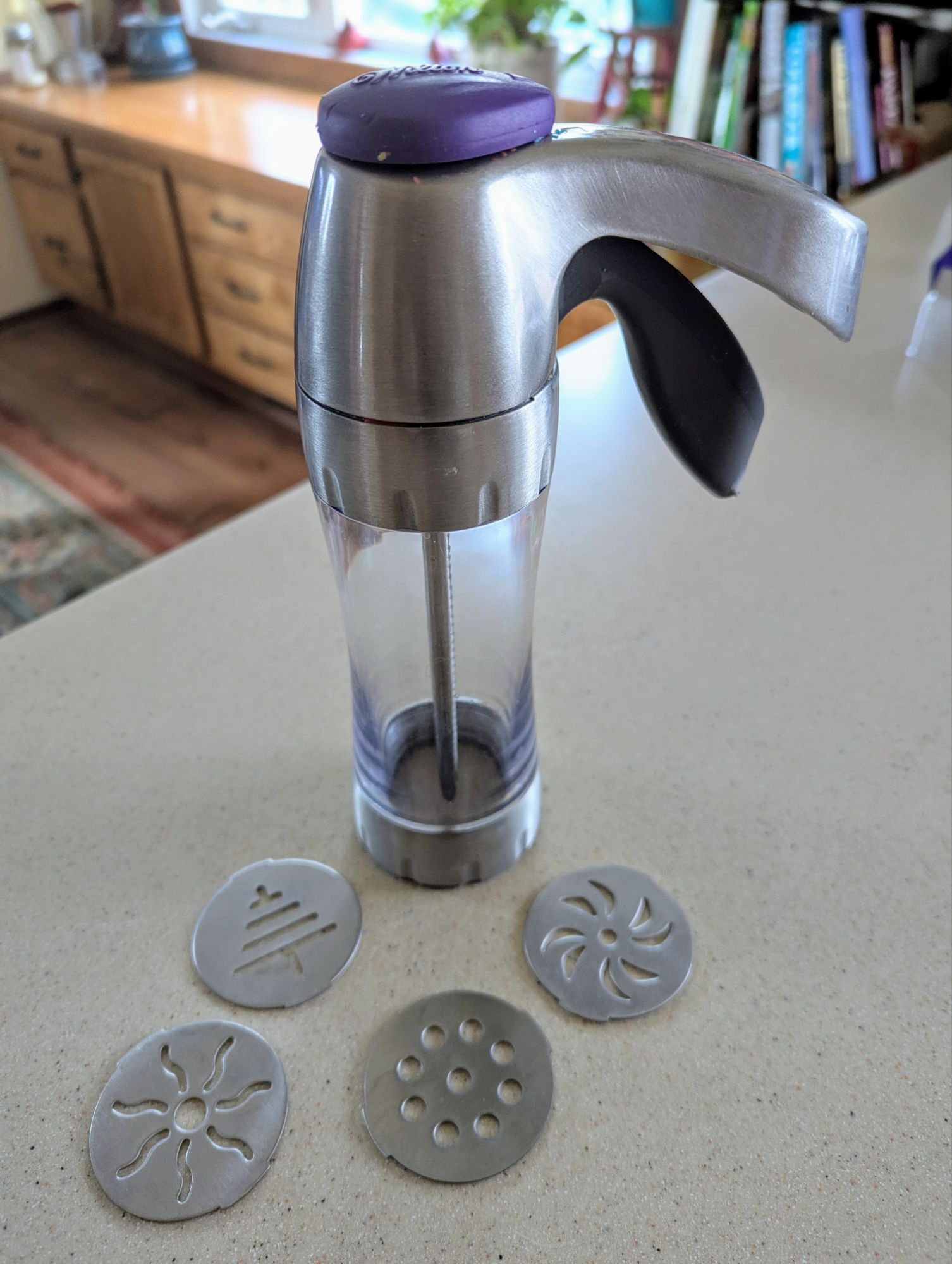 For many years I’ve relied on a Wilton cookie gun that requires you to squeeze a trigger (fun!)…