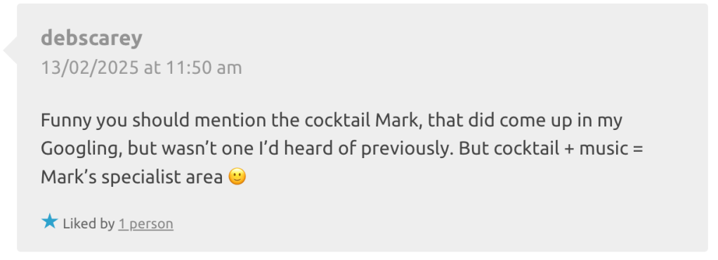 Case in point: she left a comment that said, “It’s blowing a hoolie here.” I asked her if a hoolie was like a banshee, and she replied, “In as much as they both howl, yes.”