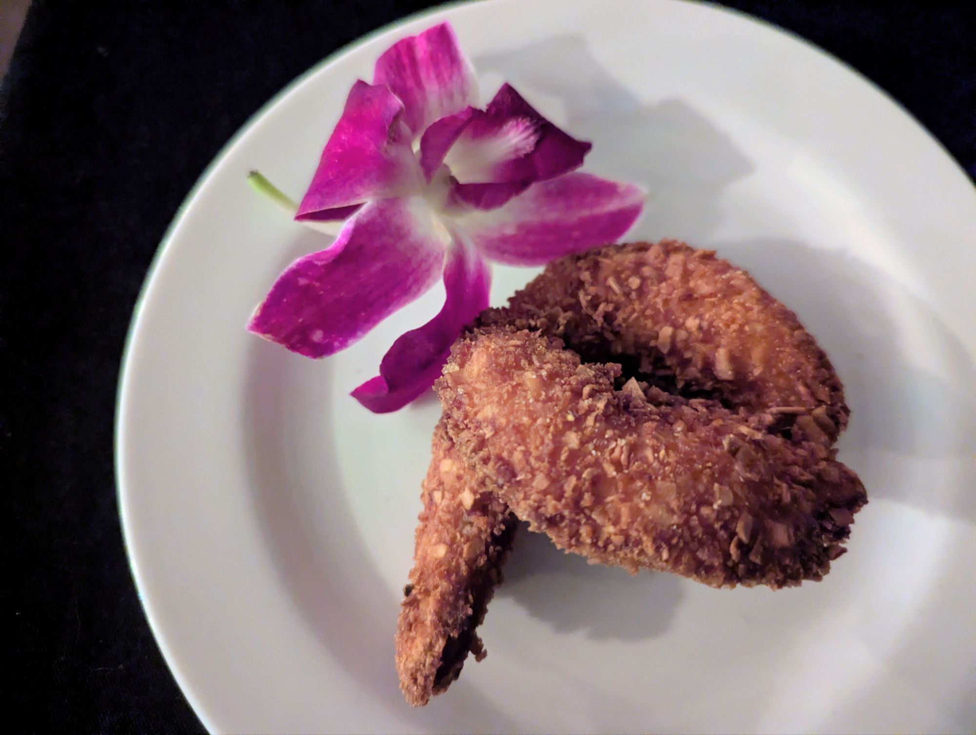 I had to google the Dirty Monkey. There are different variations; ours definitely had rum, banana liqueur, Kahlua, and I’m guessing cream of coconut. Probably pineapple, as well. It was creamy and decadent – the perfect finish to an excellent meal.
