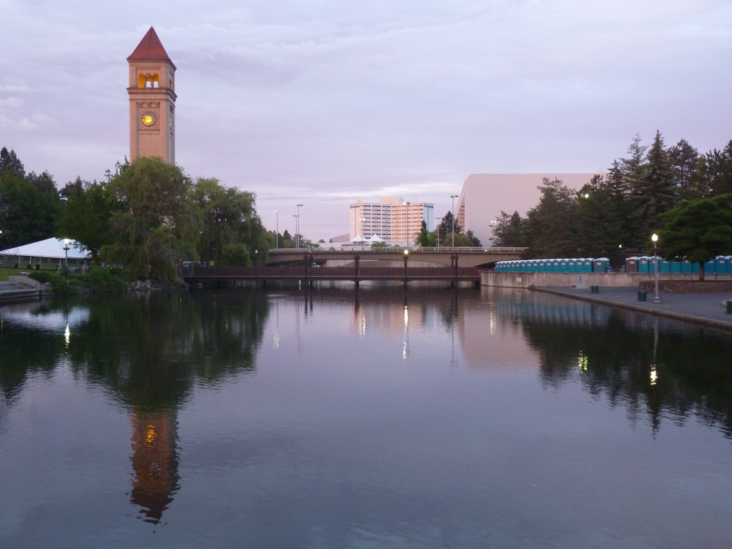It’s not even new technology. Fifteen years ago, on the first evening of my solo road trip to Ohio, I stayed in Spokane. Wandered down to Riverfront Park and took a photo of the clock tower. It was pretty picturesque, except for the row of porta-potties that had been set up for a festival that weekend.