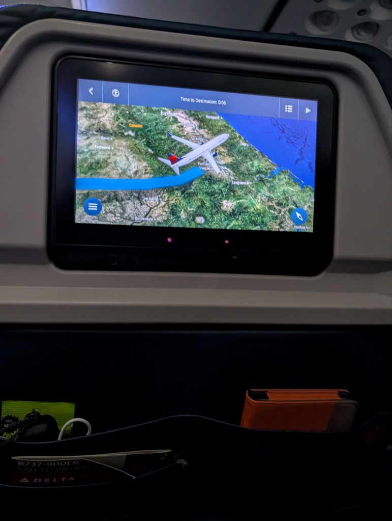 I whiled away the flights to Salt Lake City and Portland by listening to music, playing trivia and Blackjack on the seat-mounted entertainment system, and keeping an eye on the Flight Tracker, which gave real-time information. Like, at one point, we were flying over Denver at 36,000 feet, traveling 470 mph, and the air temperature was -67°. It was addictive.