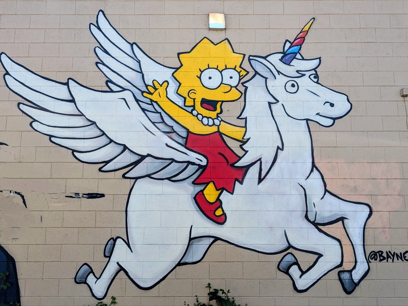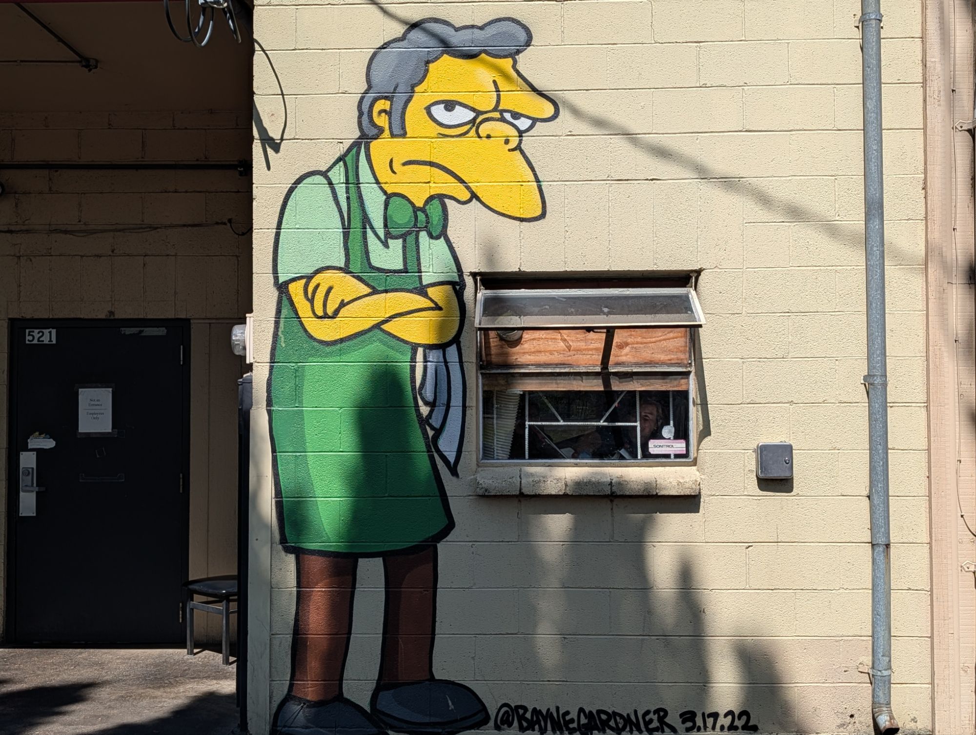 I haven’t watched The Simpsons in decades, but it’s a bona fide classic and I will always consider myself a fan. Walking around downtown on Thursday to check out the murals was pretty cool.