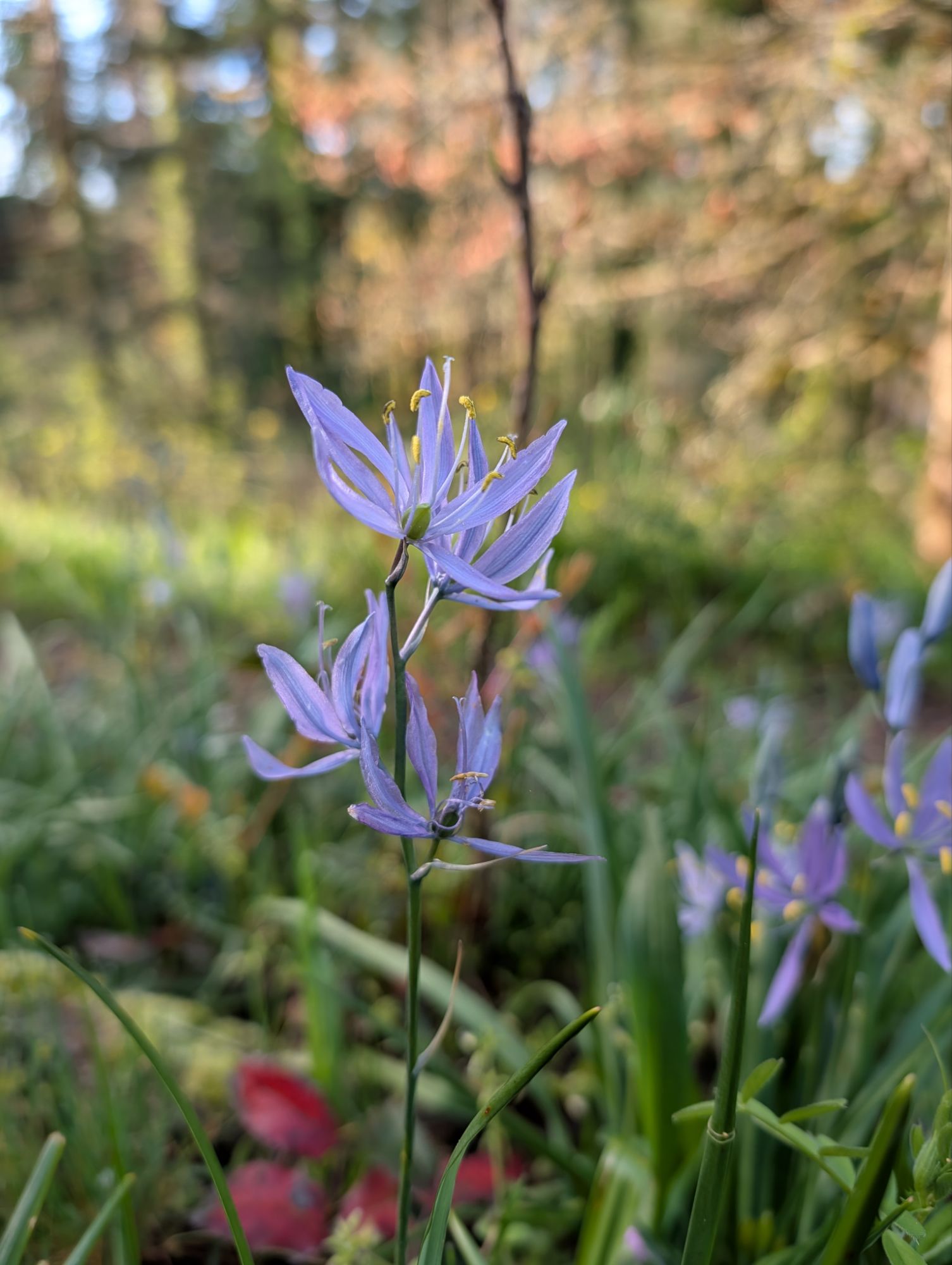 Saturday morning, I wanted to get in one final PNW hike, so I did 3.5 miles along Lacamas Creek to Round Lake and back. I hiked this trail many times while living there; it was actually close enough to my workplace that I could (and did) hit it on my lunch hour. My timing was perfect, as the Camas lilies were in full bloom. They were about a month early, according to my dad, and they only last a few weeks, so I was very fortunate to see them.