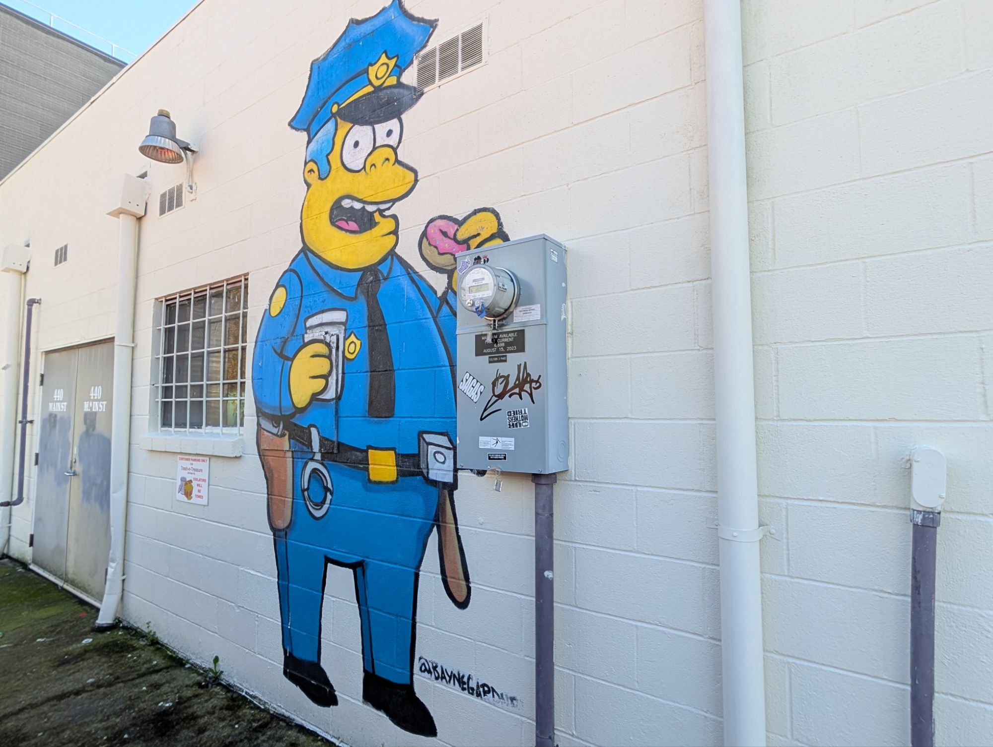 Sure enough, they lean hard into the whole Simpsons vibe, with murals scattered all over town.